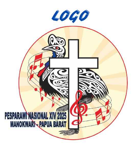 Logo Pekan Seni Paduan Suara Gerejawi (Pesparawi) Nasional ke XIV tahun 2025, yang berlangsung di Manokwari – Papua Barat, berbentuk: